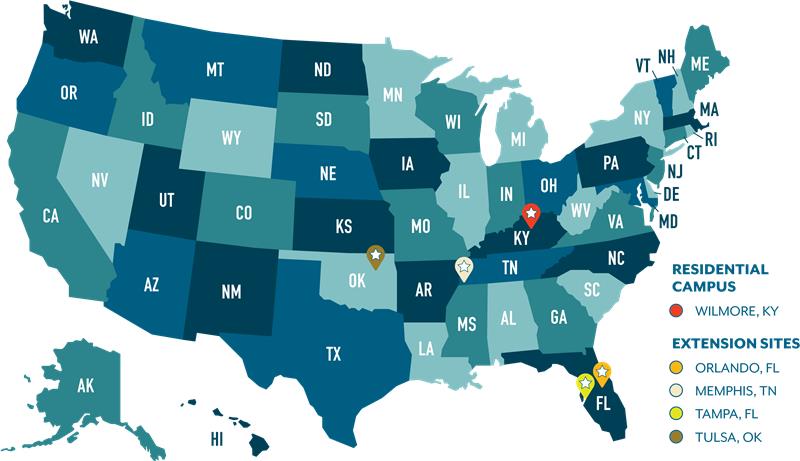 Faculty from the Kentucky campus travel to extension sites to teach hybrid courses. That means students who attend courses at the extension sites get the same great classroom education as those who attend courses on our main campus.