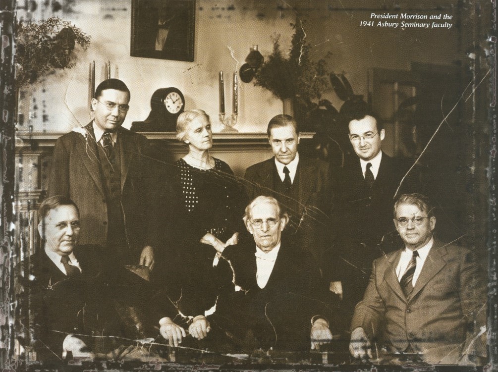 Photo of Asbury Theological Seminary faculty in 1941. In the center of the back row is Gaile and Robert Morris. Gaile Morris was the Professor of Old Testament and Hebrew and played a key role is training students at the Seminary. (Image used courtesy of the Archives of Asbury Theological Seminary).